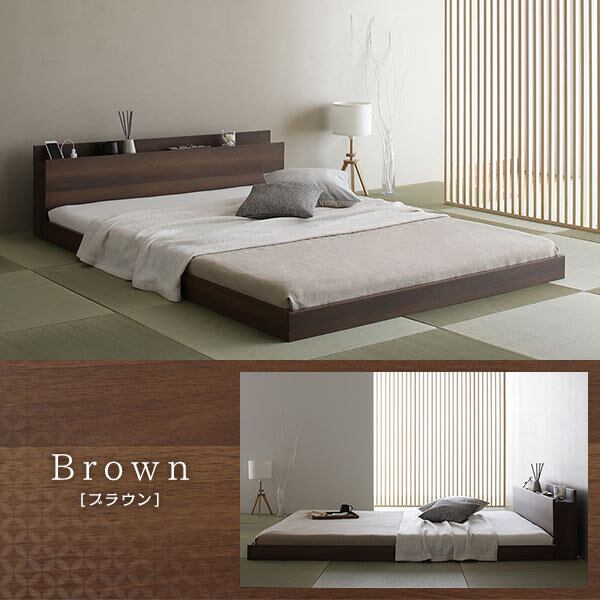 ベッド 低床 ロータイプ すのこ 木製 宮付き 棚付き コンセント付き シンプル 和 モダン ブラウン セミダブル ポケットコイルマットレス付きds-2333117