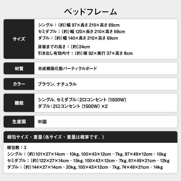 ベッド 収納付き 引き出し付き 木製 棚付き 宮付き コンセント付き シンプル 和 モダン ブラウン シングル ボンネルコイルマットレス付きds-2333095