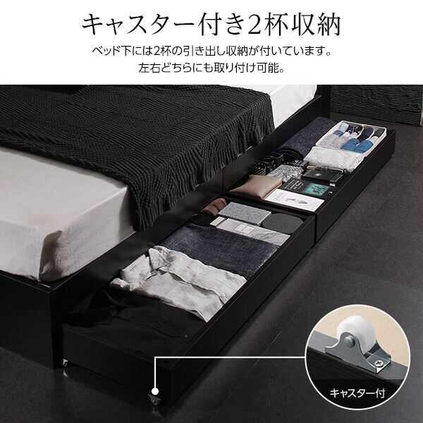 ベッド 収納付き 引き出し付き 木製 棚付き 宮付き コンセント付き シンプル モダン ブラック ダブル ボンネルコイルマットレス付きds-2151013