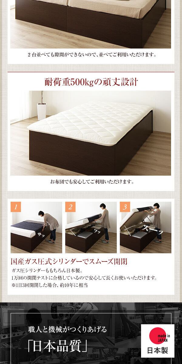 〔組立設置付き〕 収納 ベッド 通常丈 シングル 跳ね上げ式 縦開き ミドルタイプ 深さ37cm ベッドフレームのみ アイボリー ヘッドレス 日本製 国産【代引不可】ds-2446795