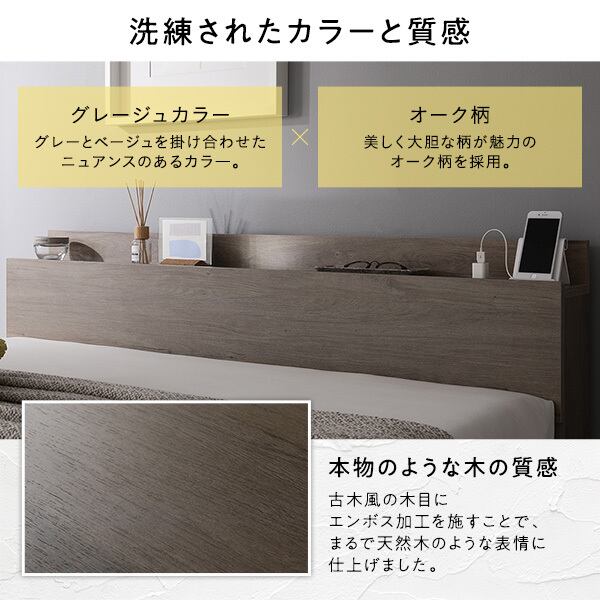 ベッド ワイドキング240 SD+SD ベッドフレームのみ グレージュ 低床 連結 ロータイプ 宮付き LED照明付き 木製 すのこds-2423375