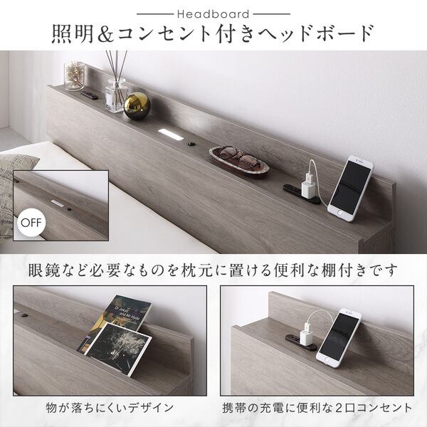 ・照明&コンセント付きのヘッドボード