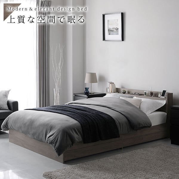 ベッド セミダブル ボンネルコイルマットレス付き グレージュ 収納付き 引き出し付 棚付き 宮付き コンセント付き 木製 オーク柄ds-2423287