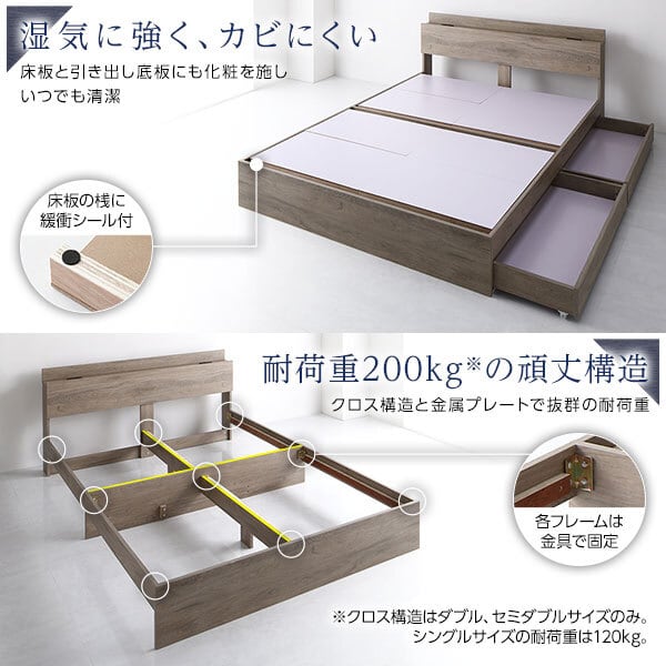 ベッドフレームには必ずスプリングマットレスを乗せてご使用ください。