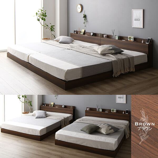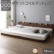 ベッド 低床 連結 ロータイプ すのこ 木製 LED照明付き 棚付き 宮付き コンセント付き シンプル モダン ブラウン ワイドキング200(S+S) ポケットコイルマットレス付きds-2267459