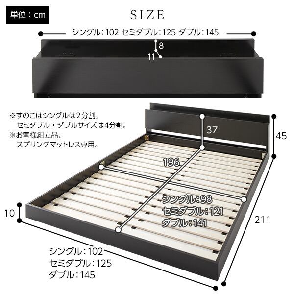 ※シングルサイズはすのこを2分割、セミダブル・ダブルサイズはすのこを4分割しています。 ※ご注意事項