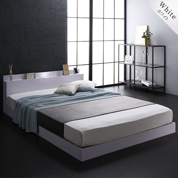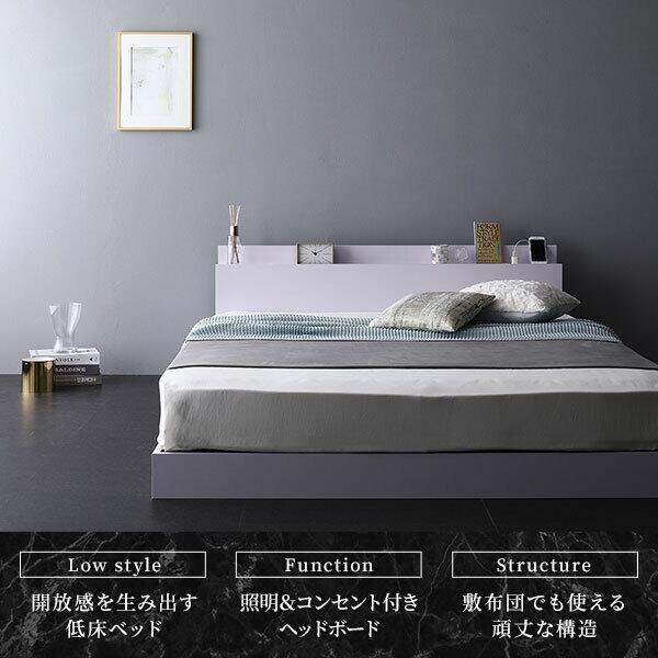 ベッド 低床 ロータイプ すのこ 木製 LED照明付き 棚付き 宮付き コンセント付き シンプル モダン ブラック セミダブル ポケットコイルマットレス付きds-2174103