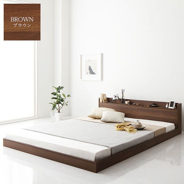 ベッド 低床 ロータイプ すのこ 木製 宮付き 棚付き コンセント付き シンプル モダン ブラック ダブル ポケットコイルマットレス付きds-2173699