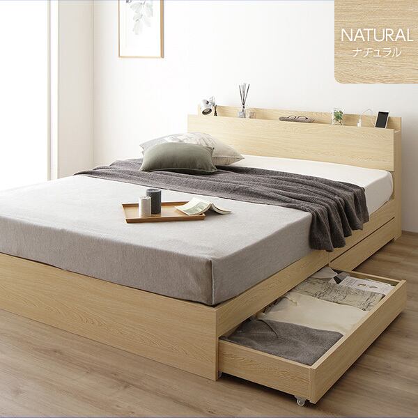 ベッド 収納付き 引き出し付き 木製 棚付き 宮付き コンセント付き シンプル モダン ナチュラル セミダブル ポケットコイルマットレス付きds-2151042
