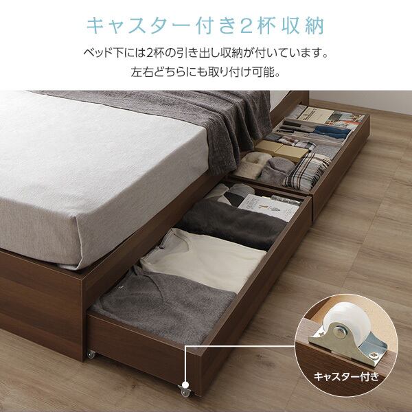 ベッド 収納付き 引き出し付き 木製 棚付き 宮付き コンセント付き シンプル モダン ブラウン ダブル ポケットコイルマットレス付きds-2151034