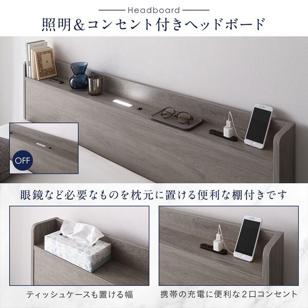 ベッド ダブル ベッドフレームのみ グレージュ ロータイプ 低床 照明付き 棚付き コンセント付き すのこ 木製ds-2423393