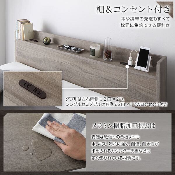 ベッド シングル ボンネルコイルマットレス付き グレージュ 収納付き 引き出し付き 棚付き 宮付き コンセント付き 木製 オーク柄ds-2423288