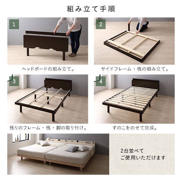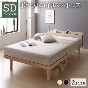 ベッド ナチュラル セミダブル ポケットコイルマットレス付き すのこ 棚付き コンセント付き スマホスタンド 頑丈 木製 シンプル モダン ベッド下収納ds-2378783