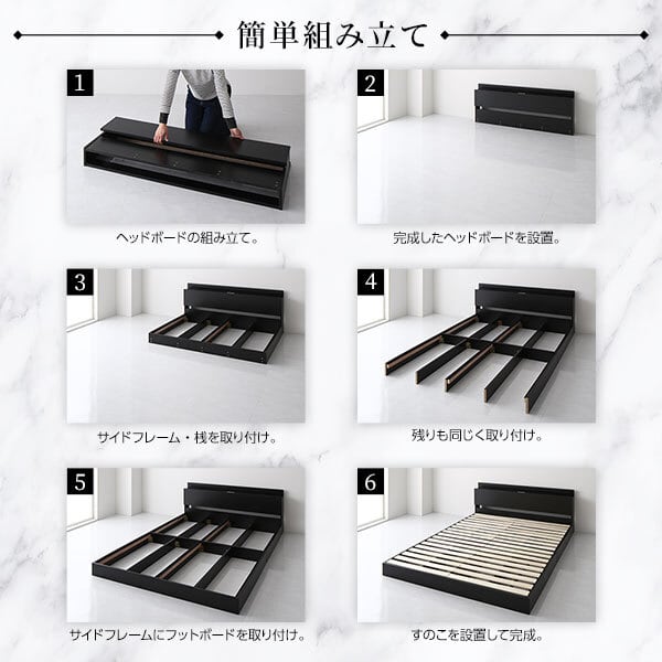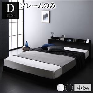 ベッド 低床 ロータイプ すのこ 木製 LED照明付き 棚付き 宮付き コンセント付き シンプル モダン ブラック ダブル ベッドフレームのみds-2174096